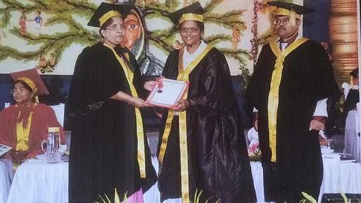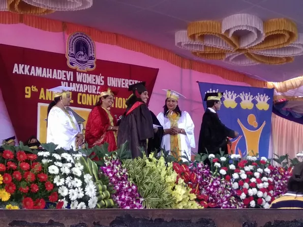 Ms.Sanju, MFM student bagged Gold medal in 2018. Honourable Vice Chancellor of Karnataka State Women’s University is presenting the Gold Medal to Ms.Sanju.